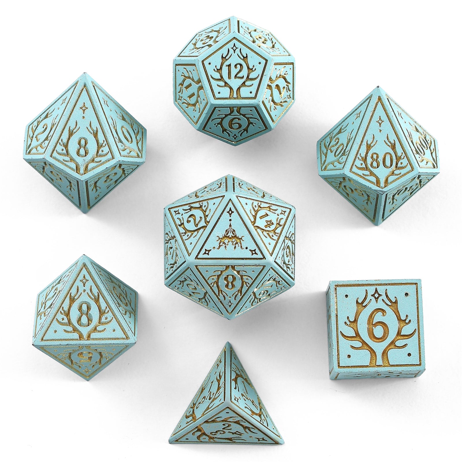 Solid Metal Druid RPG Dice Set - Pale Cyan w/Gold
