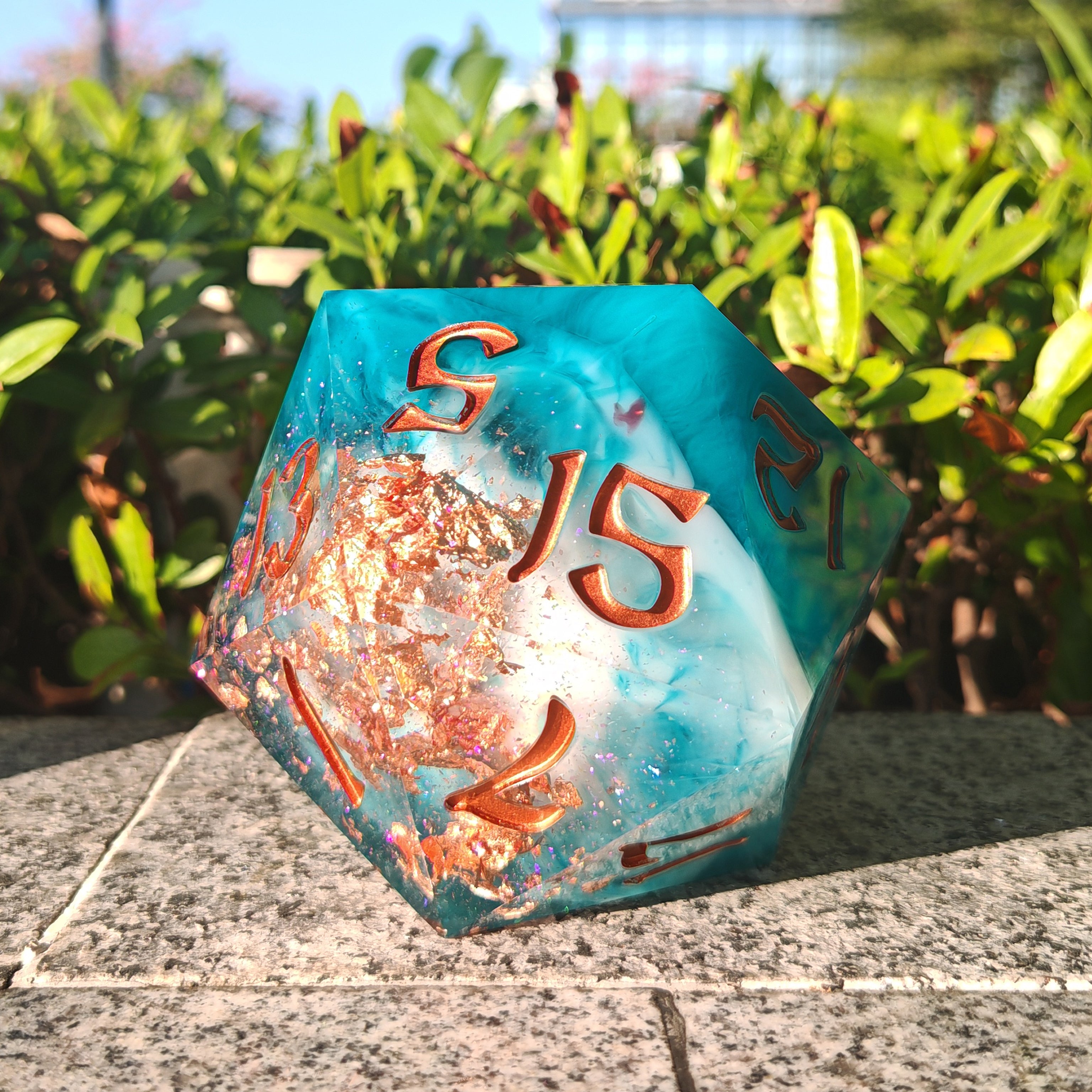 Part of our best selling sharp edge resin dice series! Each one is hand poured, sanded, polished and inked, carefully inspected and packed.