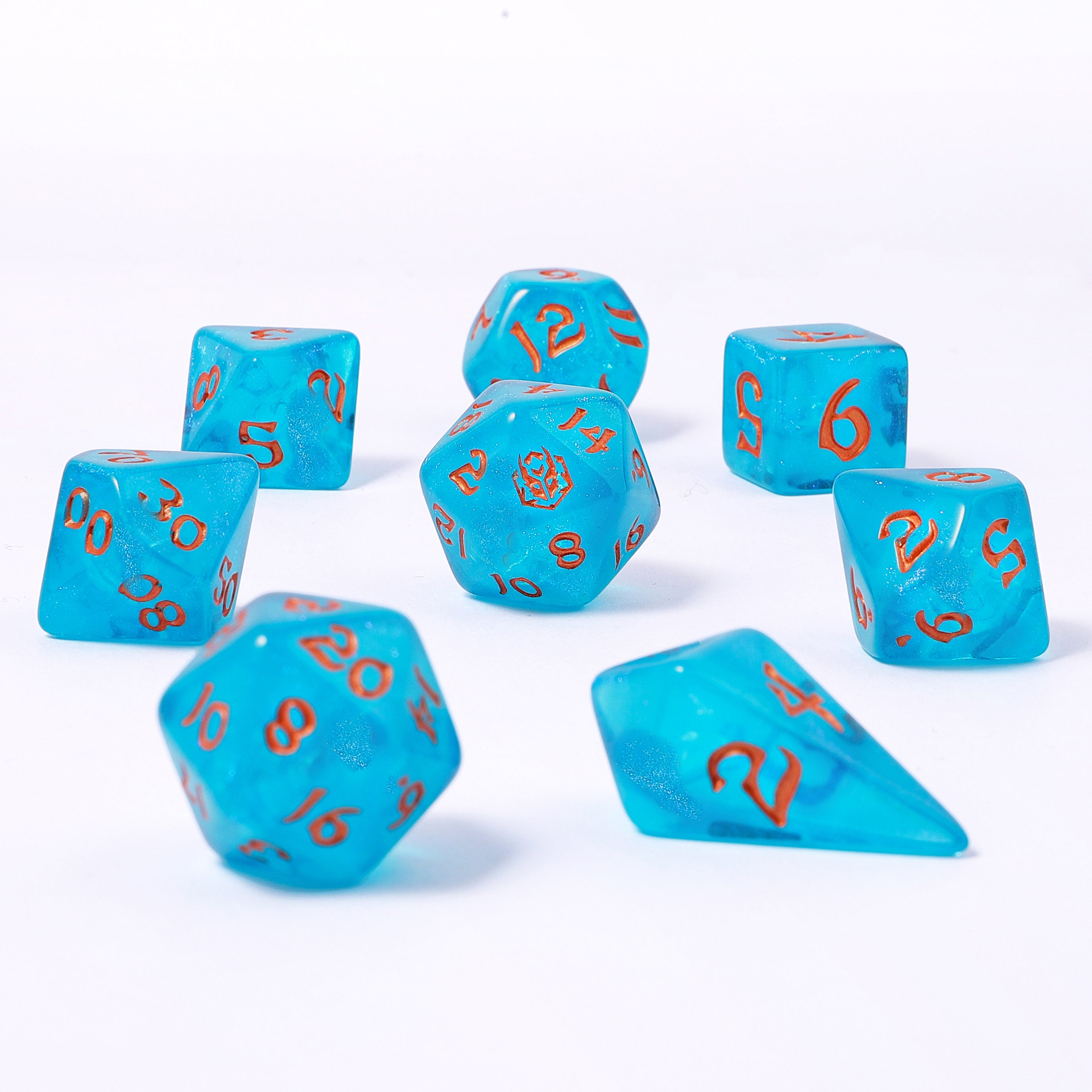 Wyrmforged Rollers - Rounded Edge 8 Piece Polyhedral Dice set - Ray of Frost