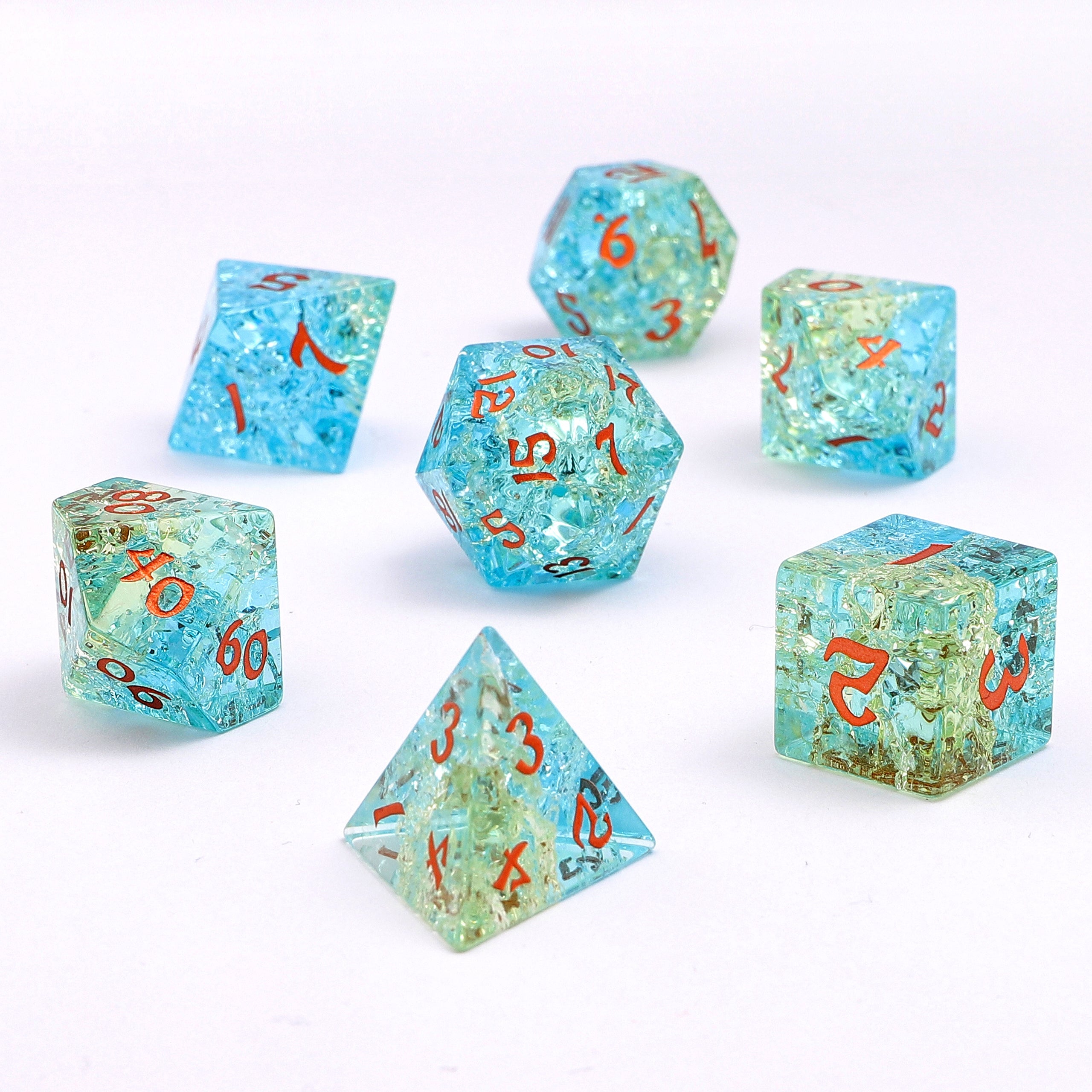 Dragon's Hoard Polyhedral Dice Set - Blasted Glass - Blue & Green
