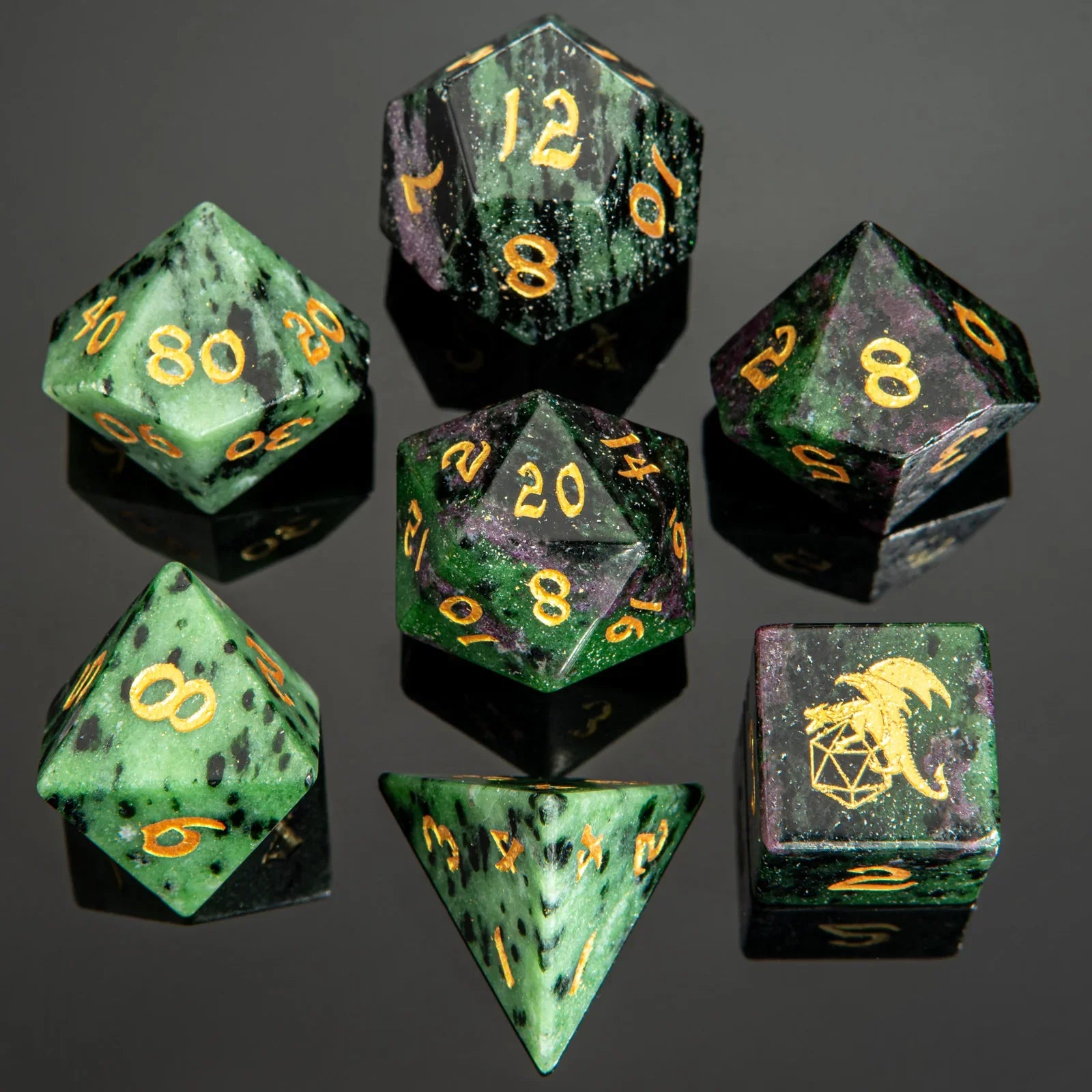 Dragon's Horde Gem Stone Polyhedral Dice Set - Ruby in Zoisite