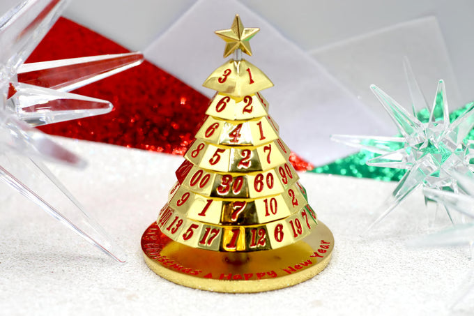 Full set of polyhedral dice in the shape of a Christmas tree.